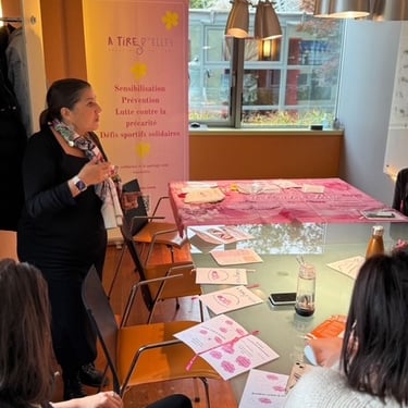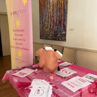 À Tire d'Elles est une association engagée dans la prévention et la sensibilisation contre le cancer du sein. Son nom est un jeu de mots qui place les femmes - elles - au cœur du mouvement. Il symbolise l'élan, la solidarité et la détermination collective pour faire avancer l'information, encourager le dépistage et soutenir toutes celles concernées par la maladie.
